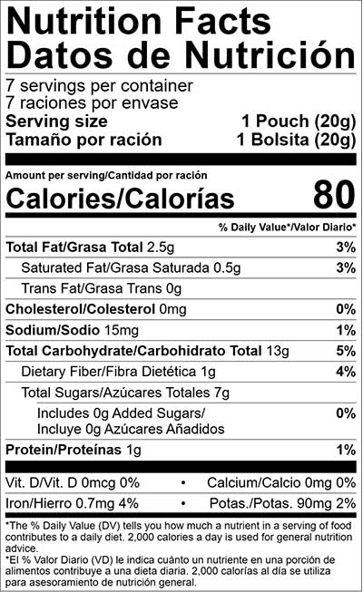 - Bocadillos de fruta seca y cereales, suaves y masticables, elaborados exclusivamente para niños a partir de los cuatro años de edad